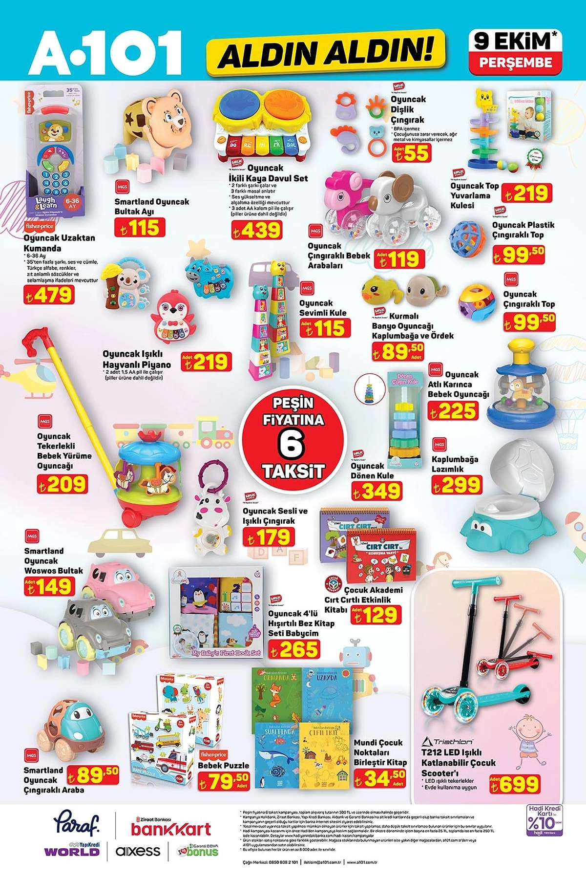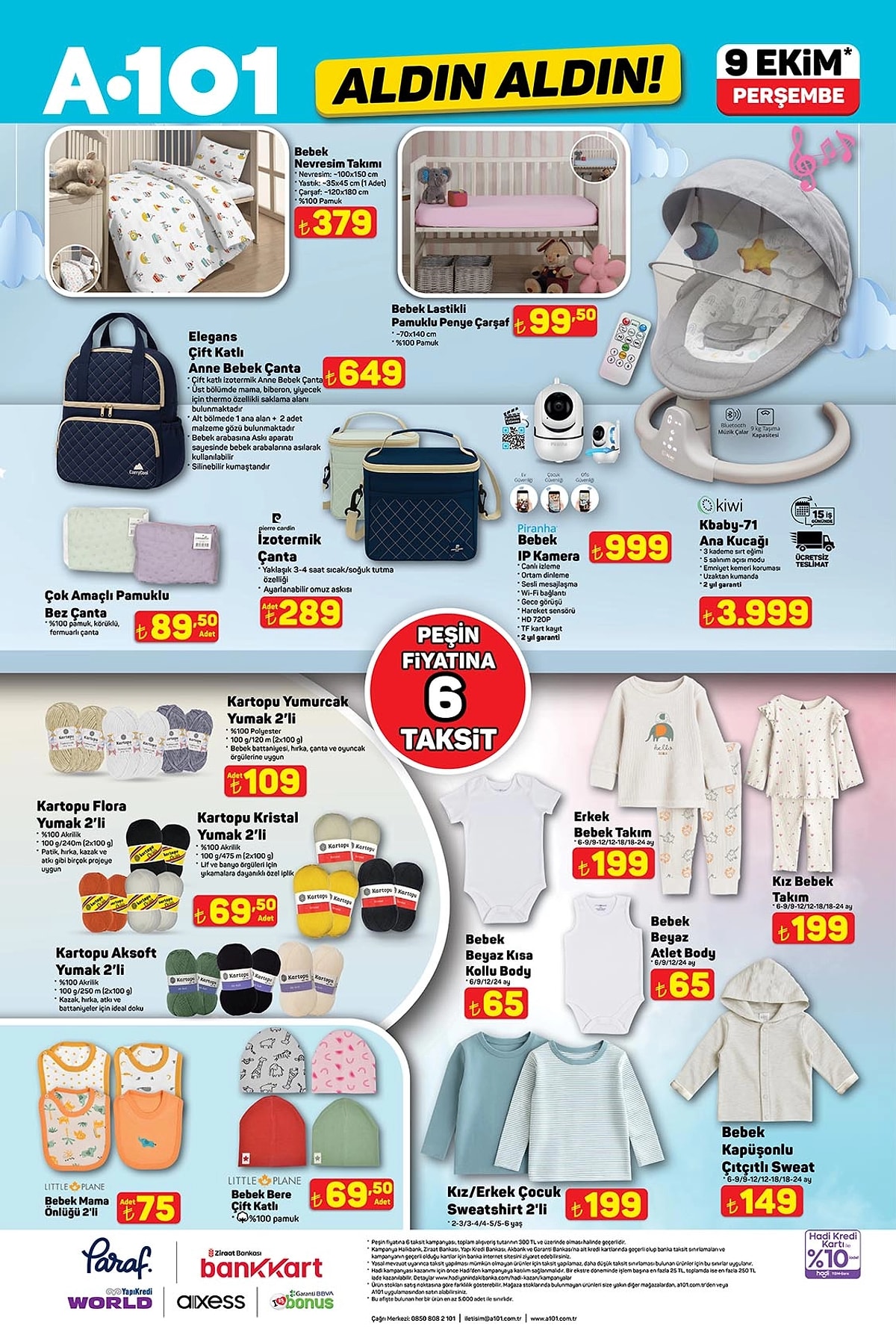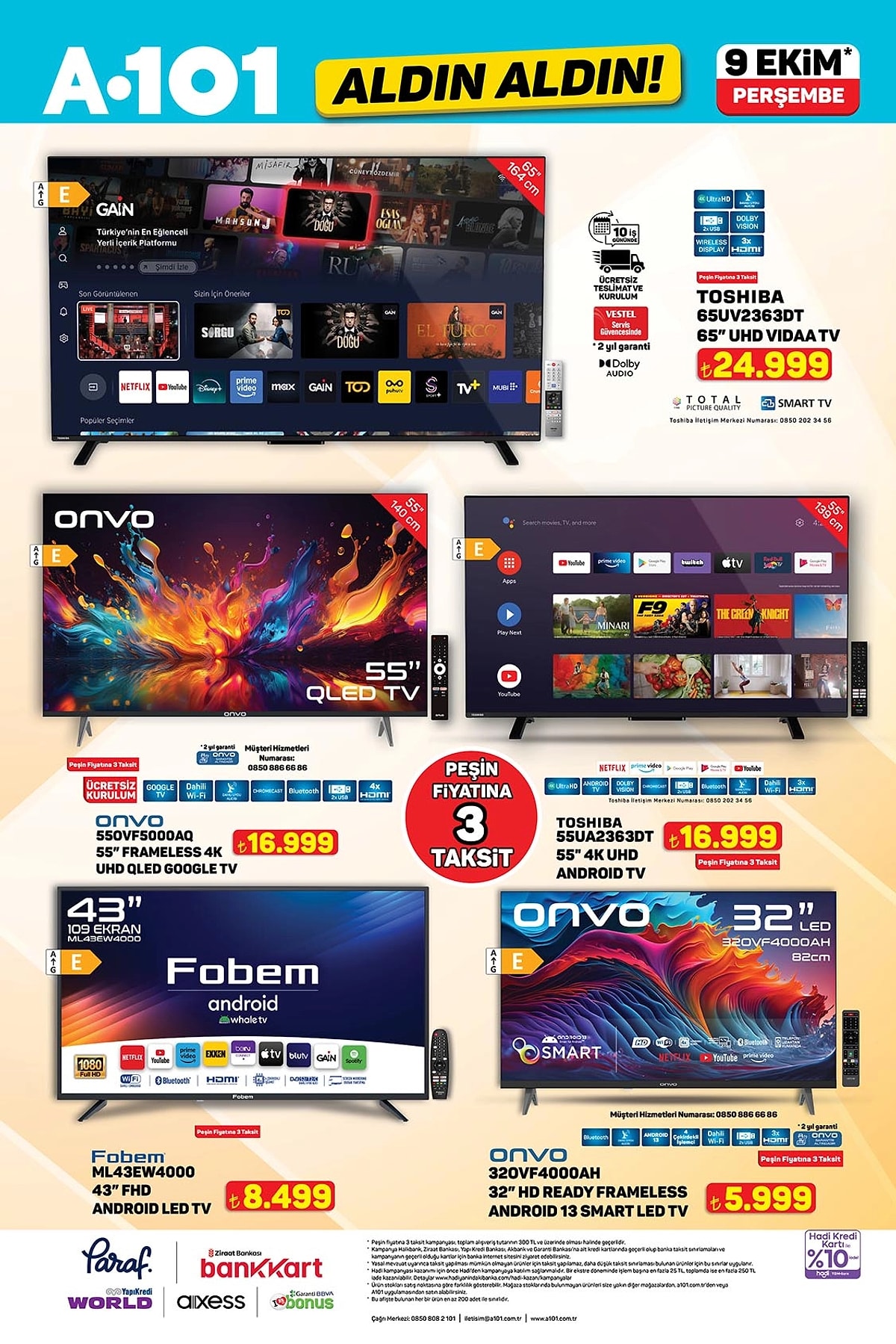 Türkiye’nin en yaygın indirim market zincirlerinden A101, 9–15 Ekim tarihleri arasında geçerli olacak yeni Aldın Aldın kampanyasını duyurdu. Bu haftaki katalogda televizyon, beyaz eşya, motosiklet, mutfak gereçleri, gıda ve bebek ürünlerinde dikkat çeken indirimler yer alıyor. Teknoloji meraklılarına son model televizyonlar ve küçük ev aletleri, bebekli ailelere ise titreşimli ve müzikli ana kucağı gibi özel ürünler sunuluyor.