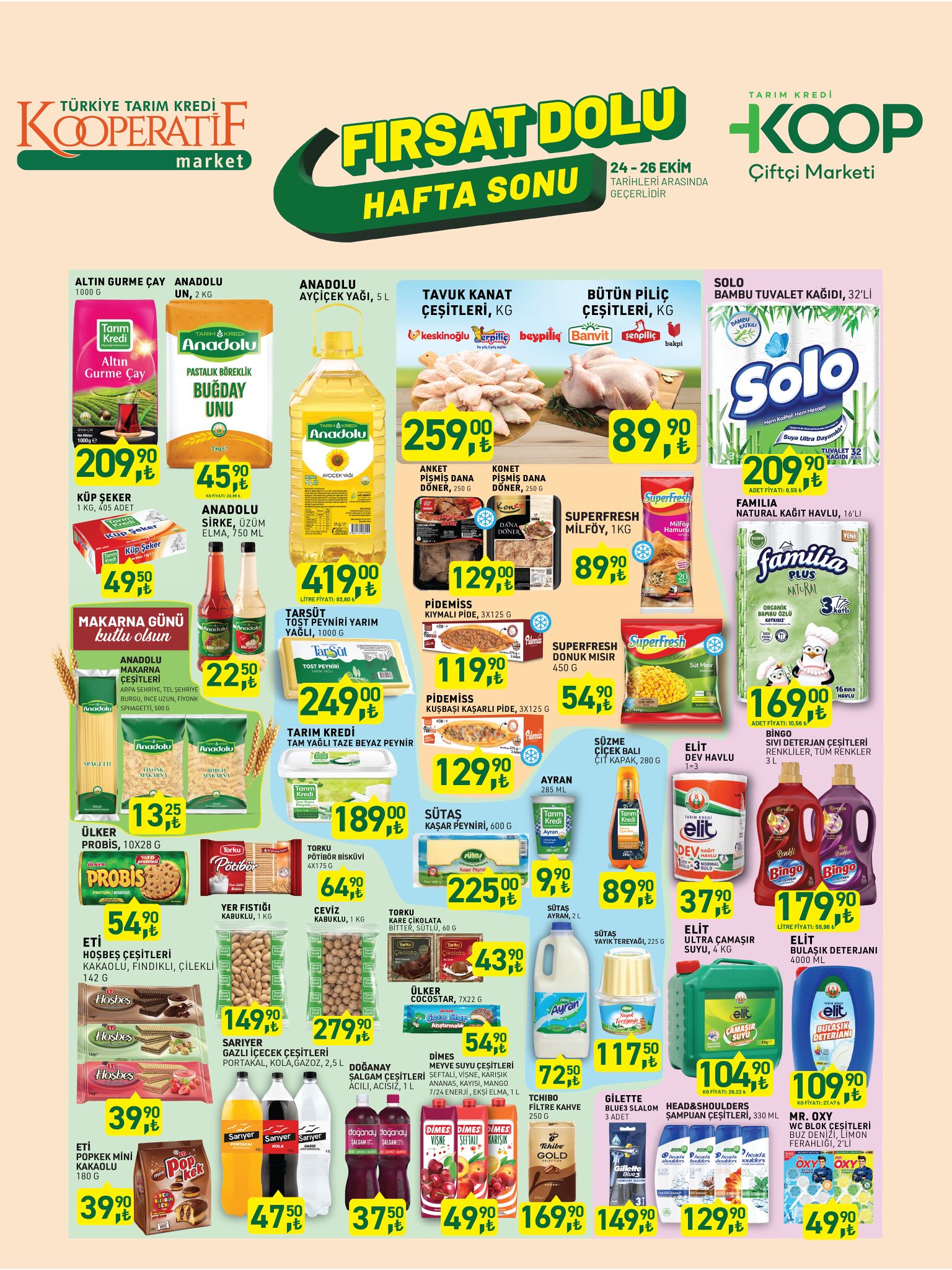 24-26 Ekim tarihleri arasında geçerli olan “Fırsat Dolu Hafta Sonu” kampanyası, Tarım Kredi Market şubelerinde stoklarla sınırlı olarak uygulanacak. Gıda, temizlik ve kişisel bakımda avantajlı alışveriş yapmak isteyenler için kaçırılmayacak fırsatlar tüketicileri bekliyor.
