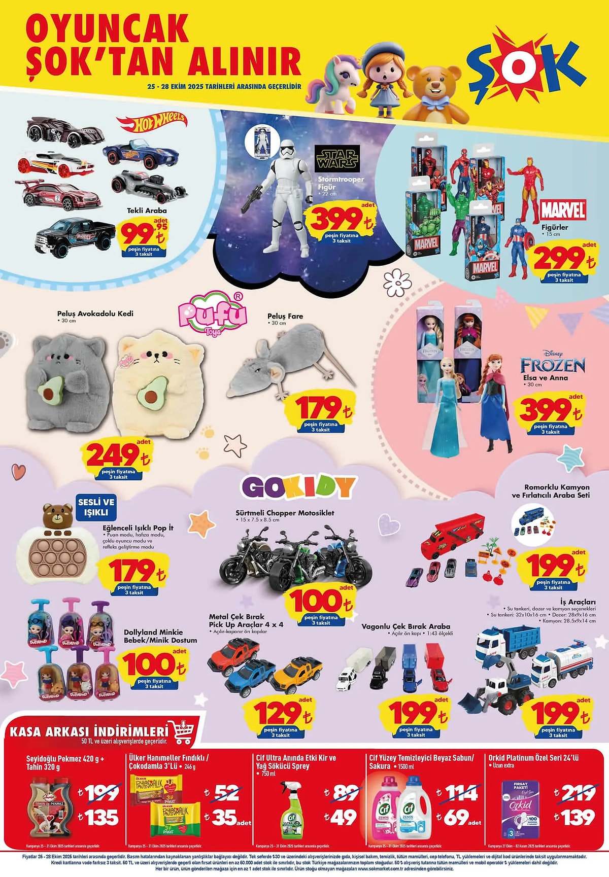ŞOK Market, 25–28 Ekim 2025 tarihleri arasında geçerli olacak yeni aktüel ürün kataloğunu duyurdu. Bu hafta oyuncak reyonları, Marvel figürleri ve lisanslı koleksiyon ürünleriyle dolup taşacak.